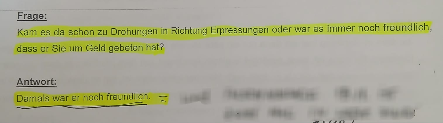 Wenn es um Erpressung ging, warum wird das in der Antwort nicht erwähnt?