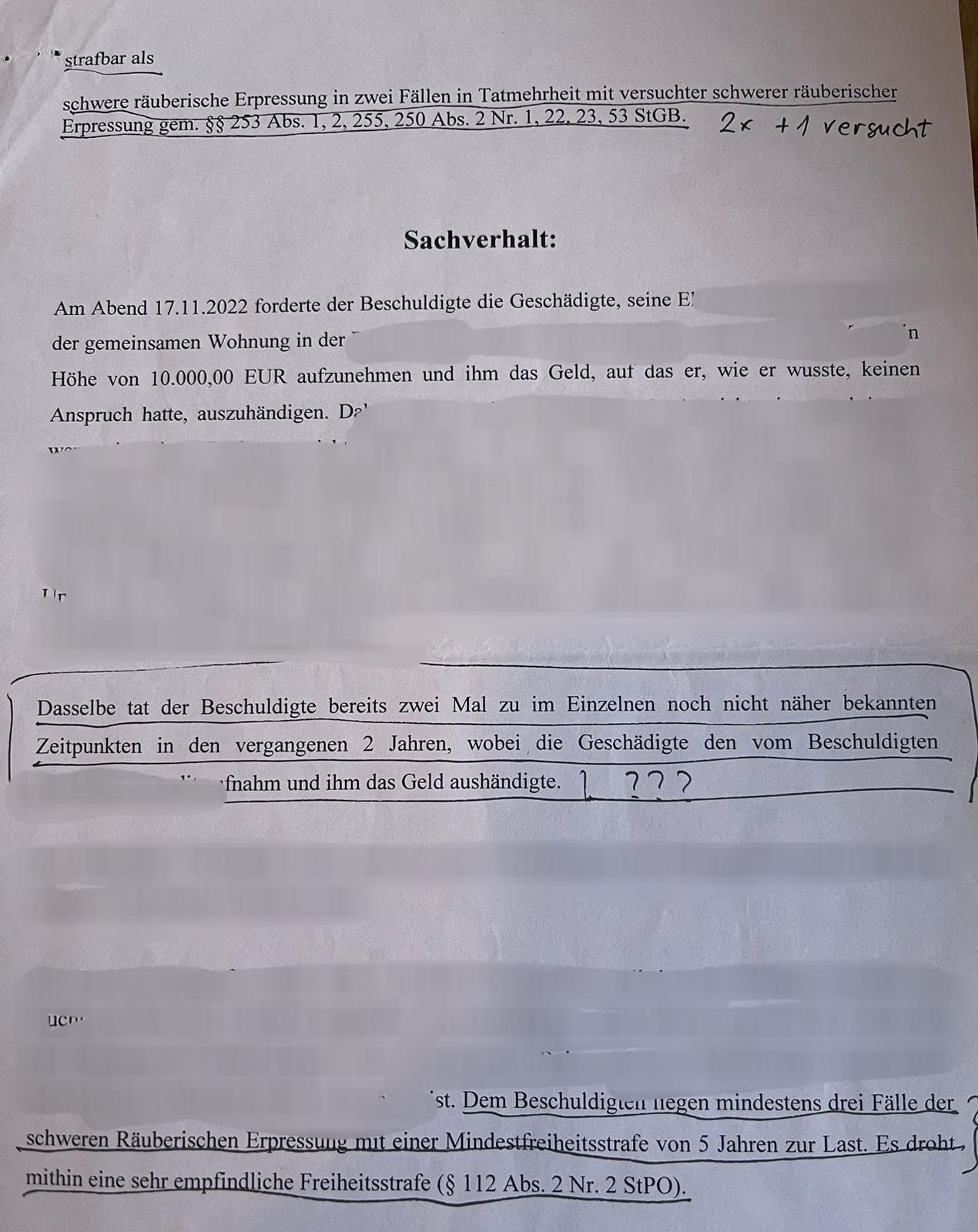 • zwei angeblicher schwerer Erpressungen in den vergangenen zwei Jahren